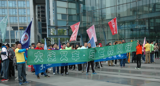 在大会组委会 “健康 和平 交流”的主题指引下,大连叉车以“环保”为己任,积极性响应大会号召,不单独制作文化衫,而是要求员工身着以前徒步大会发放的服装参加徒步,当叉车员工穿着五颜六色的文化衫汇聚在美丽的星海湾畔时,大连叉车,这个有着六十年历史的“叉车摇篮”成为了大连国际徒步大会上活力四射的“彩虹军团”。