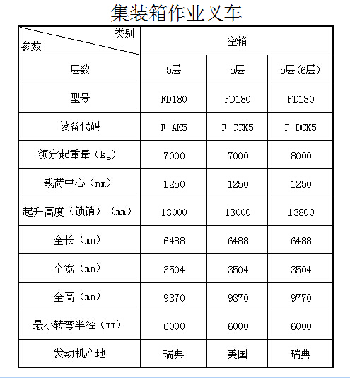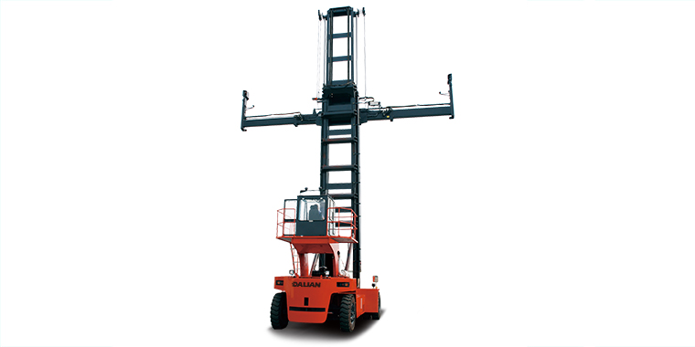 采用进口空箱属具。该属具两点锁紧,电控操作,单梁结构;属具伸缩、转锁、侧移的控制阀全部安装在属具本体上,只需另接进回油管和电缆就可以工作,方便可靠;伸缩托链管路安装在筒外侧,维修方便、视野好。尤其是伸出时具有差速功能,为用户的作业节省了时间,提高了作业效率。